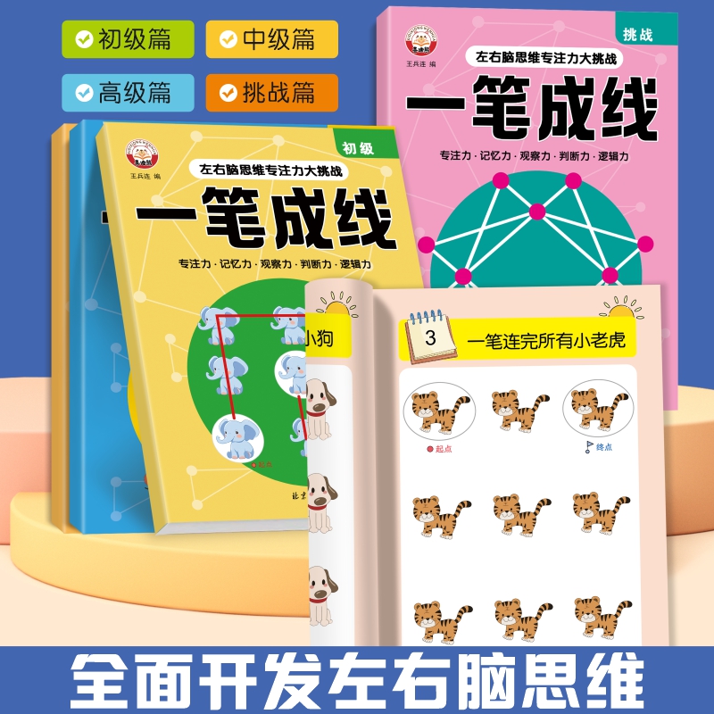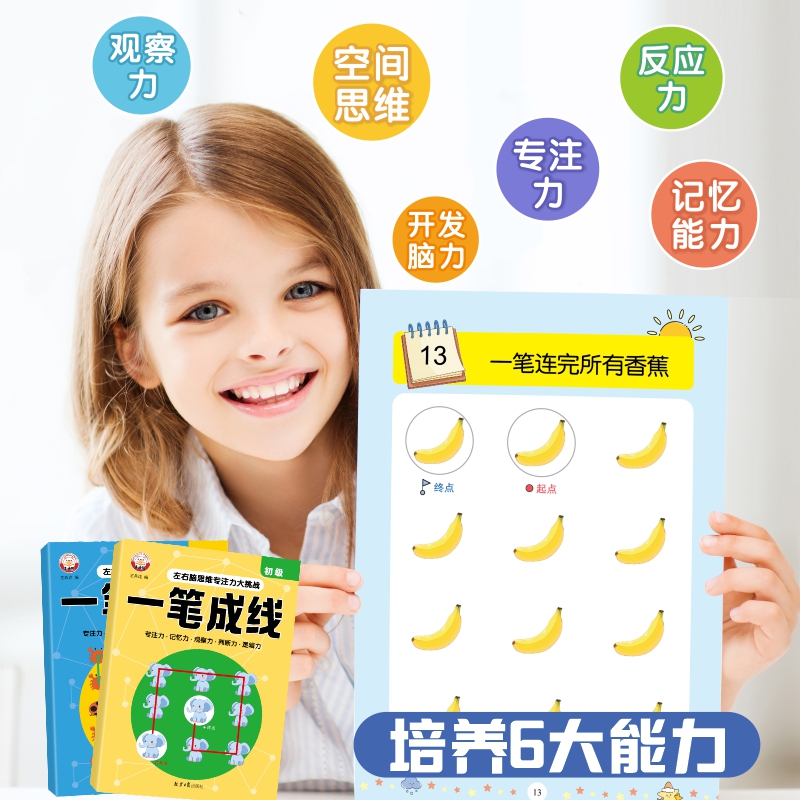 12岁儿童全脑思维一笔成线专注力逻辑思维训练智力开发数感启蒙sz幼儿左右脑开发思维训练小学生益智思维逻辑训练书