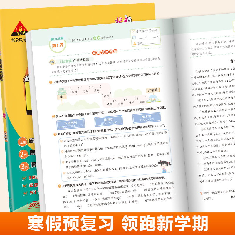 小学生21天领跑新学期寒假作业阅读口算专项训练 笔记寒假预备语文数学一年级二年级三四五六年级寒假衔接一本通人教版 2025版 状元