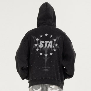 帽衫 拼接小logo印花插肩袖 美式 情侣加绒连帽卫衣 Achock官方店