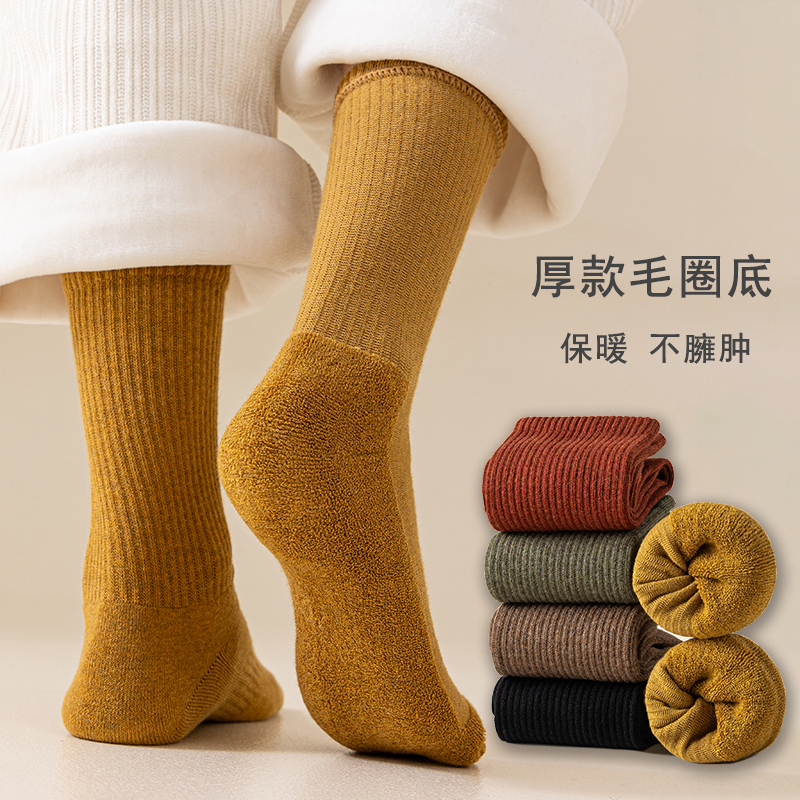 中筒袜女秋冬外穿配鲨鱼裤 纯棉美拉德长筒加厚毛圈袜防臭运动袜子