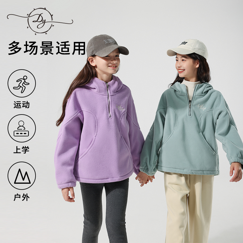 女孩加厚保暖儿童摇粒绒连帽衫 小叮尤尤女童加绒卫衣2025秋季 新款