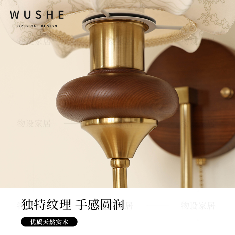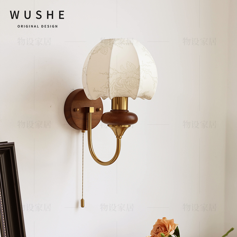 菲罗拉花苞壁灯法式 复古中古卧室床头灯布艺客厅带开关过道楼梯灯