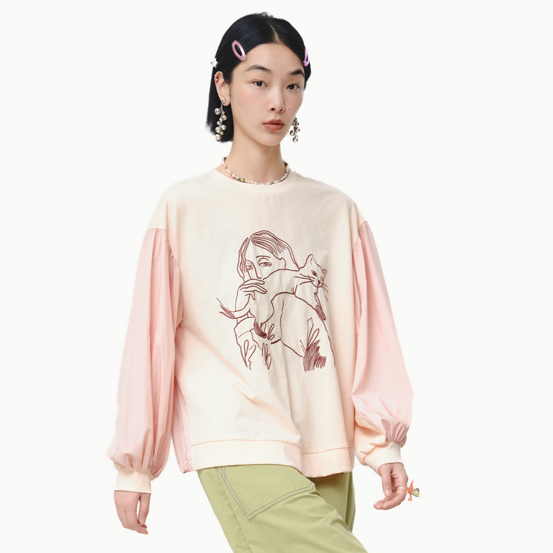 T恤女 .FUN系列圆领开衩抽绳设计师短款 MOVEUP幻走2025春季 新款
