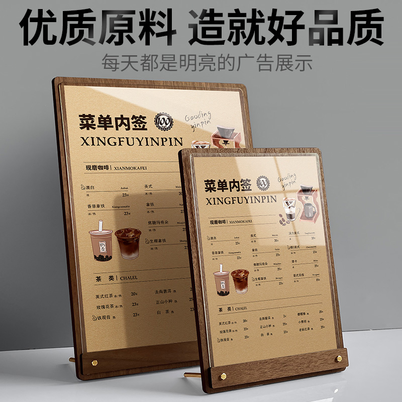 奶茶店菜单展示牌广告牌咖啡酒吧桌面广告牌定制透明亚克力A4夹板价目表价格点餐立牌夜市摆摊摆台卡设计制作