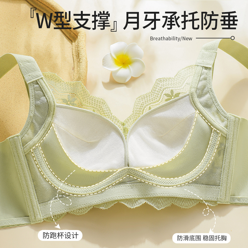 全罩杯防下垂微聚拢胸罩无痕大胸显小文胸 遐内衣女薄款 小清风