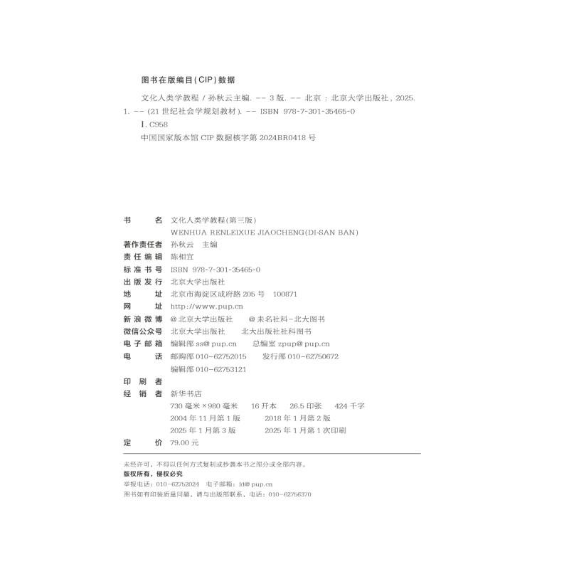 第三版 3版 孙秋云 正版 人类学基本知识基本理论入门读物 文化人类学教程 21世纪社会学规划教材 北京大学9787301354650 2025新书