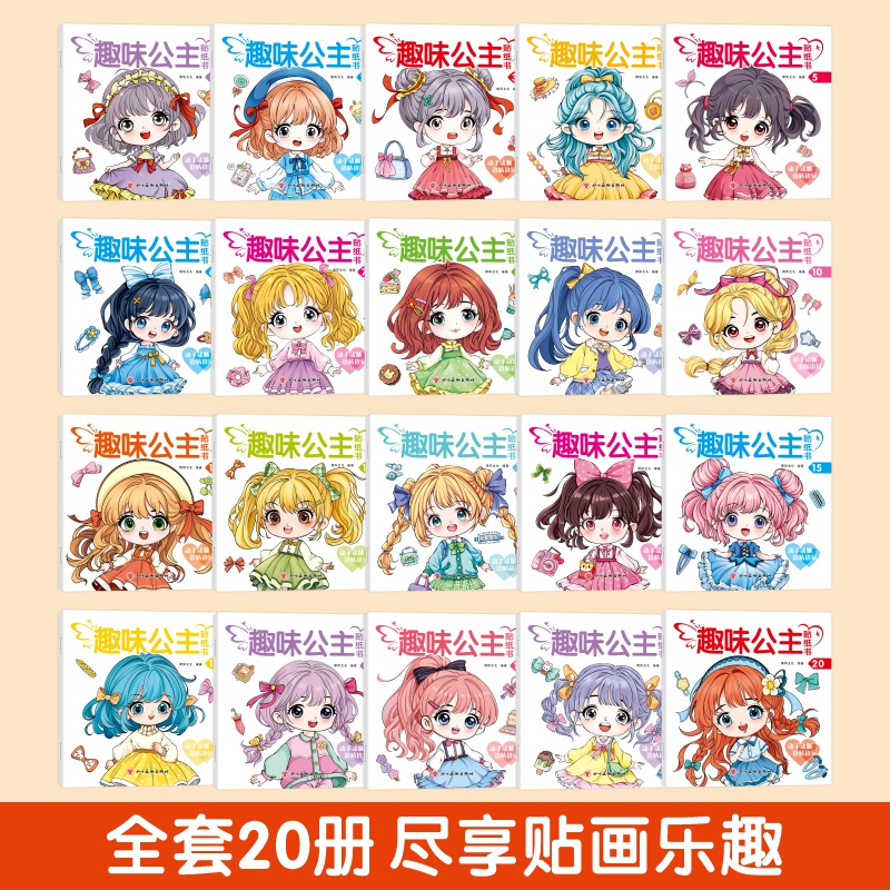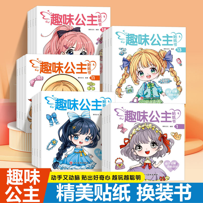 卡通涂色书幼儿美少女换装 6岁儿童动脑益智力玩具美丽变装 秀 贴纸书全套20册女孩专注力训练绘本公主换衣服趣味粘贴贴画3 公主换装