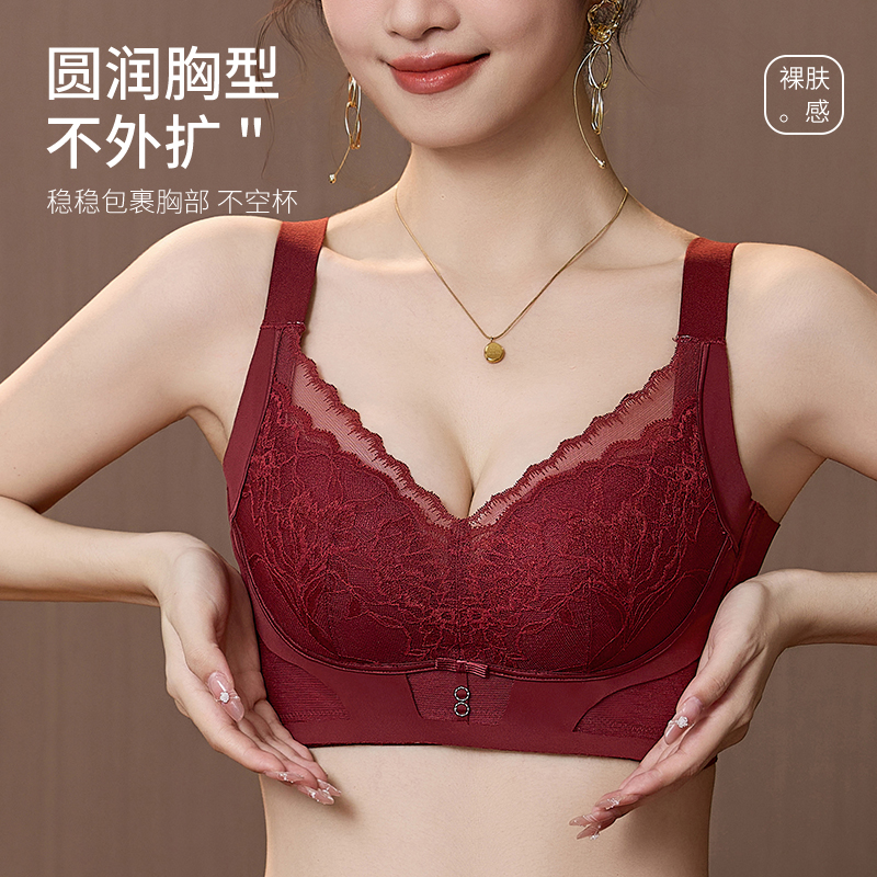 爱戴调整型内衣女小胸聚拢收副乳大胸显小无钢圈本命年红色文胸夏