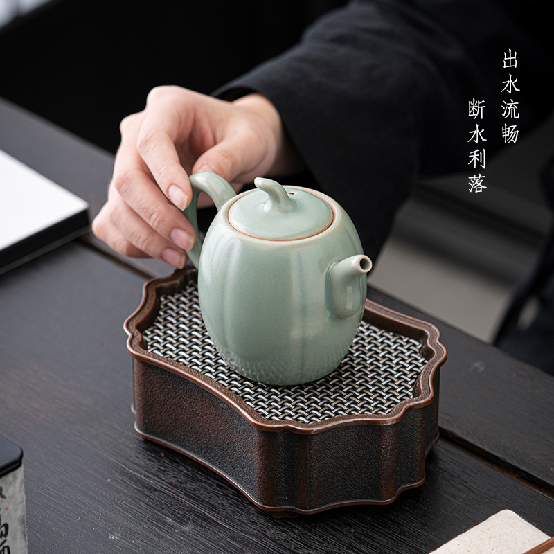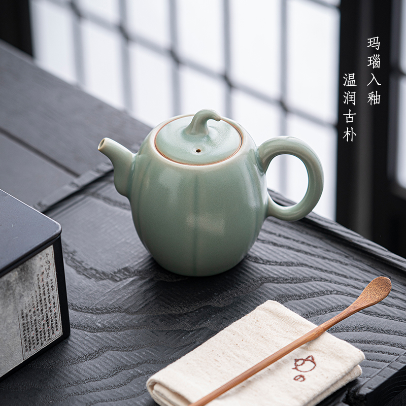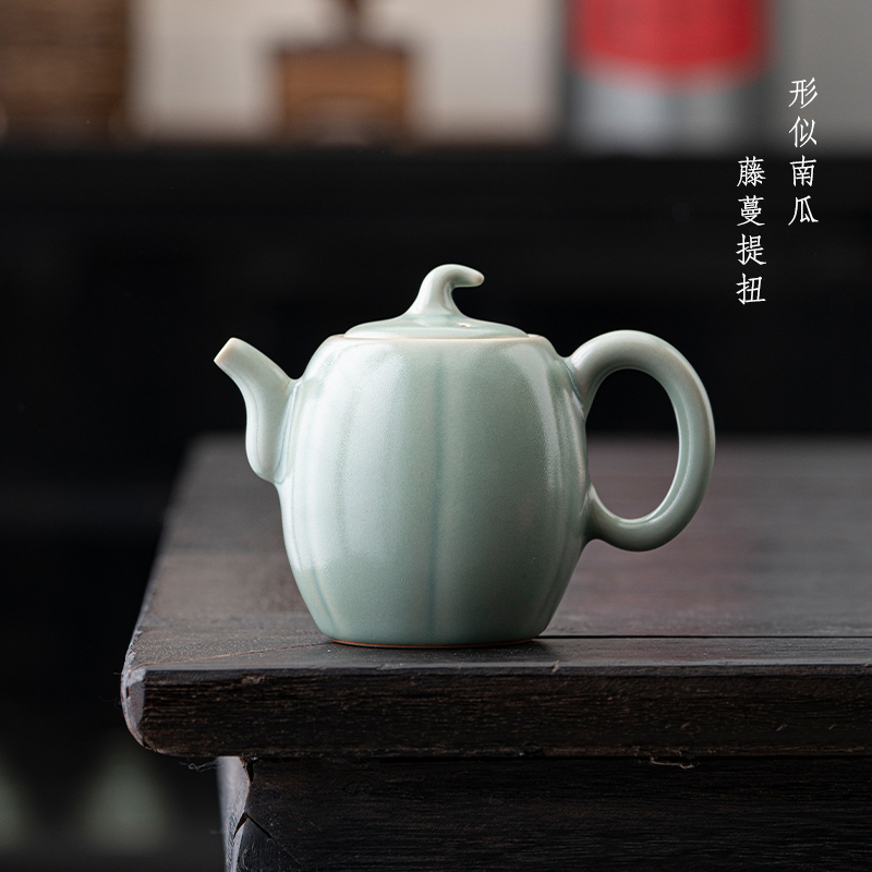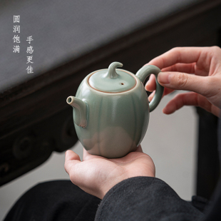 汝山明汝瓷仿古豆青釉青蔓瓜壶高档泡茶壶开片可养功夫茶具可定制