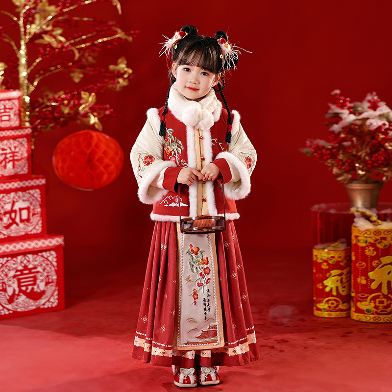 国风喜庆新年衣服 加厚女孩儿童冬装 拜年服女童2025新中式 汉服冬季