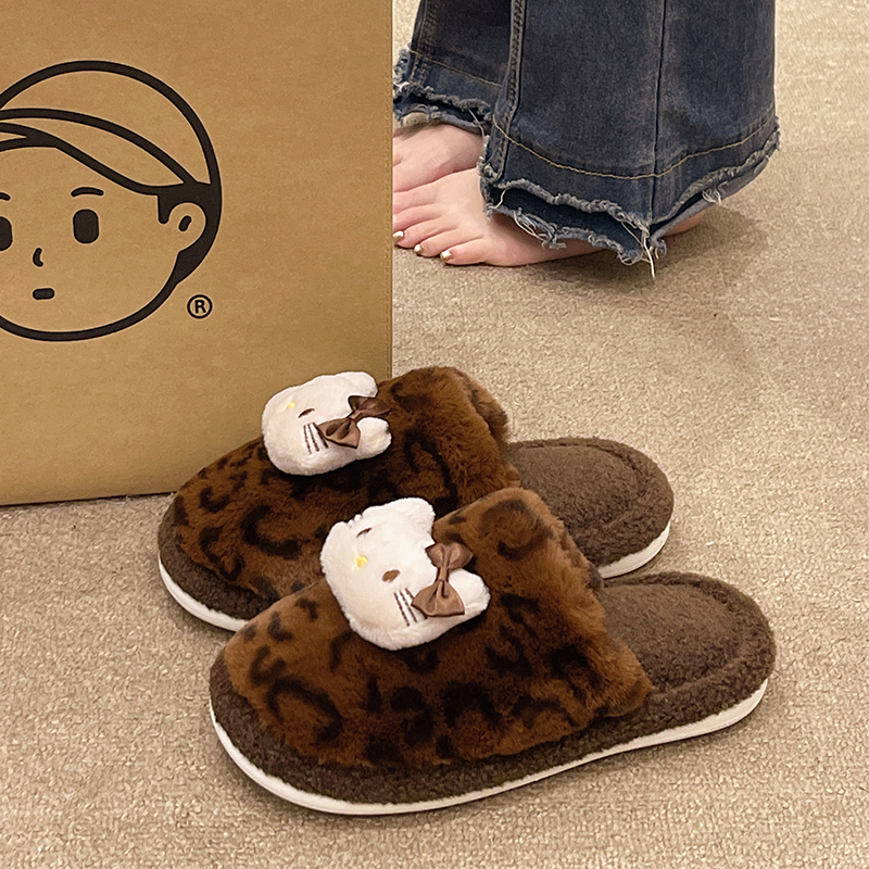 防滑厚底包跟室内家居月子保暖可爱毛毛棉鞋 孕妇棉拖鞋 女士秋冬季