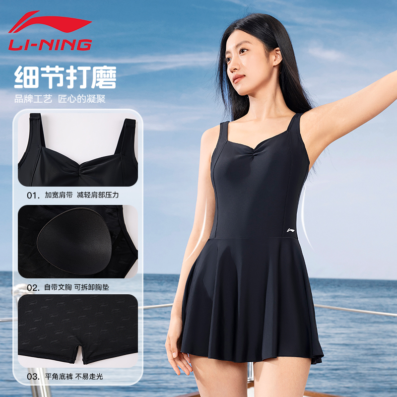 泳装 专业遮肚显瘦保守泡温泉大码 连体游泳衣2025新款 李宁泳衣女款