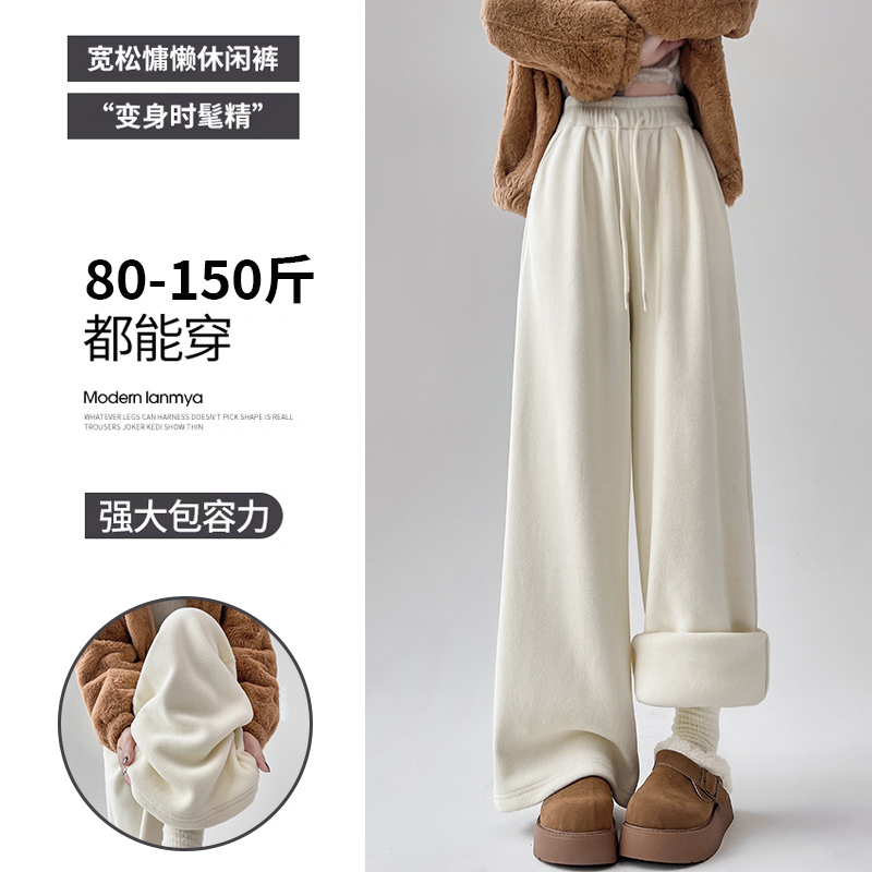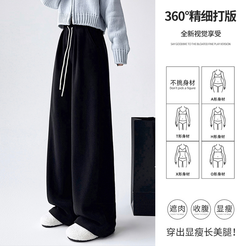 高级宽松慵懒垂感直筒休闲加绒阔腿裤 糯米毛巾裤 女春秋冬2025新款