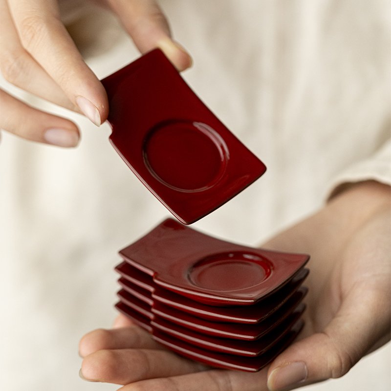隔热垫蜡烛台底座中式 杯托 国风茶杯垫 陶瓷赭红茶杯垫 草木祠
