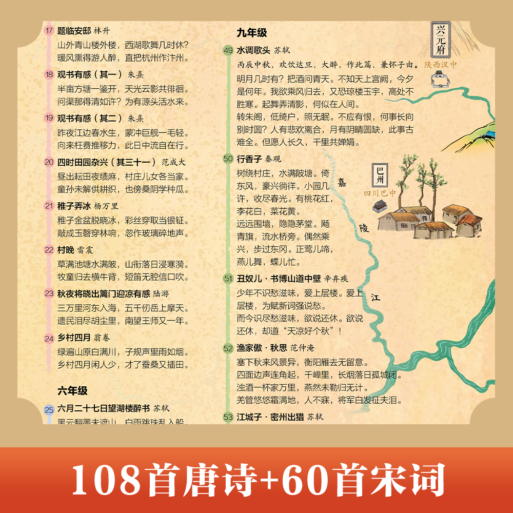 时光学 唐诗宋词古诗词成语全套4册北斗挂画儿童防水挂画百科知识地图全景中国小学生专用地图家用地理历史语文启蒙地图 地图上