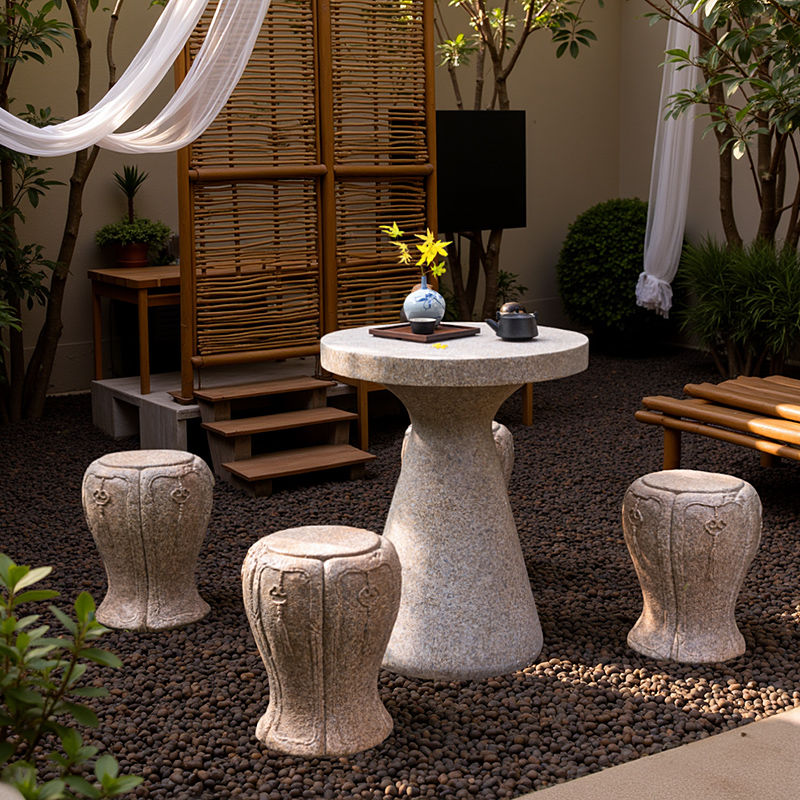 掬涵新中式 饰品摆件 庭院仿石桌凳一套户外室外花园桌椅造景布置装