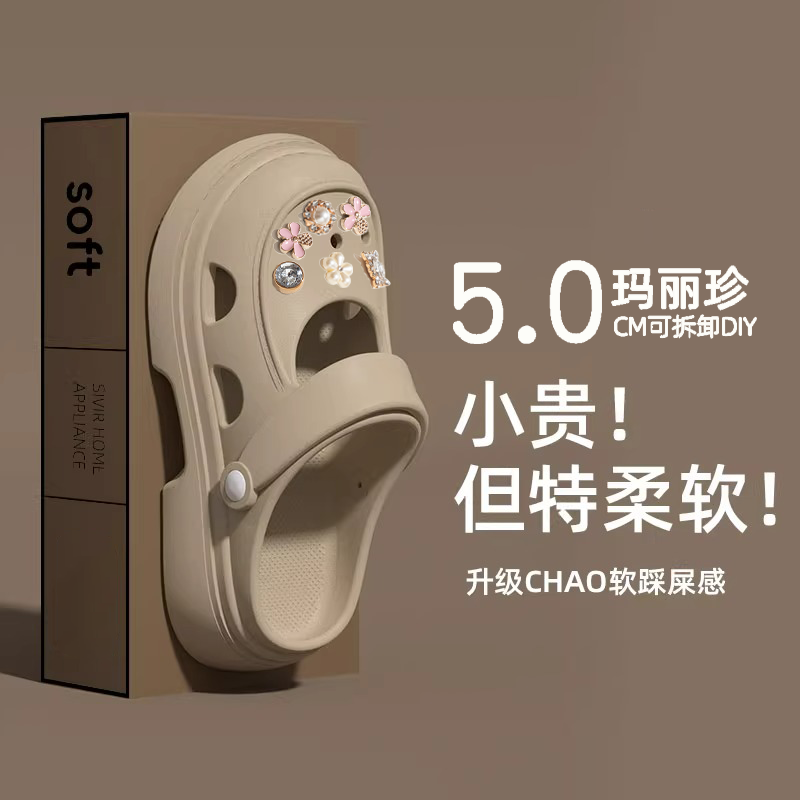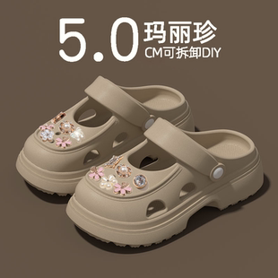 防滑防臭增高厚底海边沙滩拖鞋 玛丽珍洞洞鞋 外穿2025新款 夏季 女款