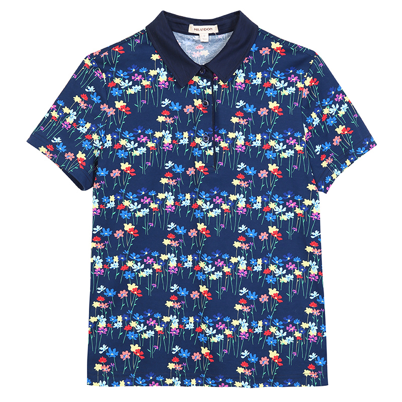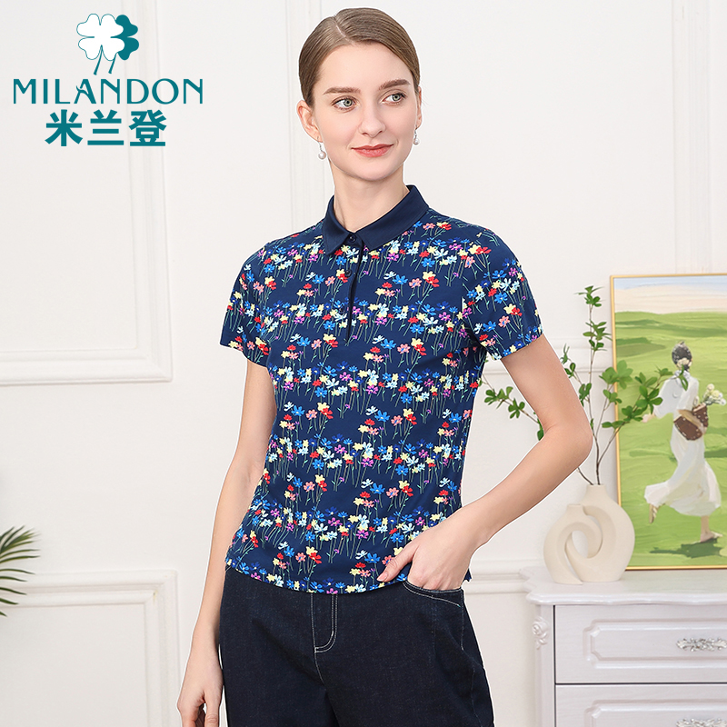 显瘦polo领印花针织T恤衫 米兰登中老年妈妈装 短袖 新款 2025年夏季