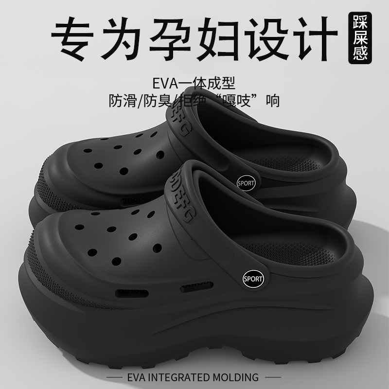 外穿2025新款 夏季 防滑厚底凉鞋 沙滩鞋 女士 孕妇洞洞鞋 包头拖鞋 女款
