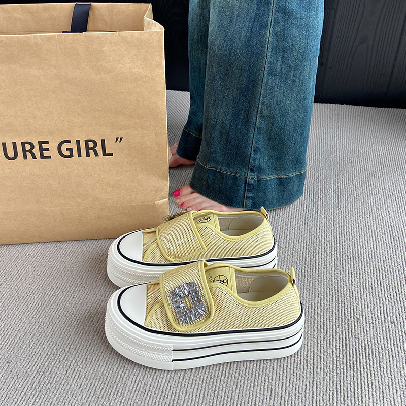 女夏季 运动休闲鞋 松糕小白鞋 34码 2025超火增高帆布鞋 透气网面板鞋