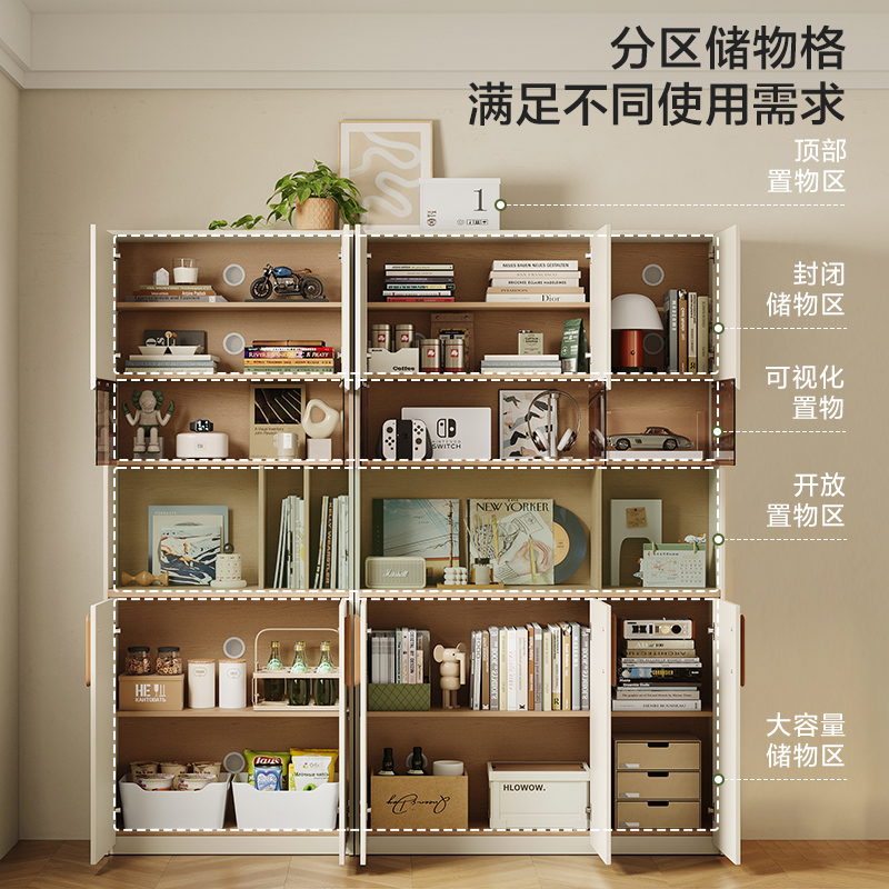 林氏家居推拉书柜储物柜一体书架客厅组合展示门置物靠墙方满系列