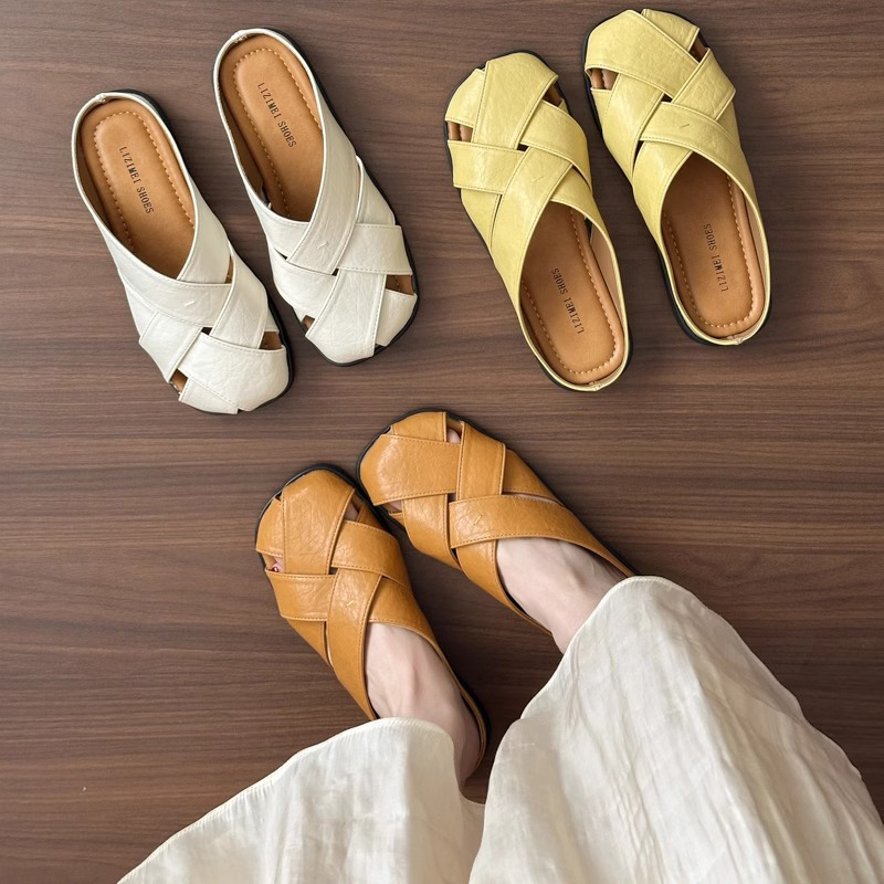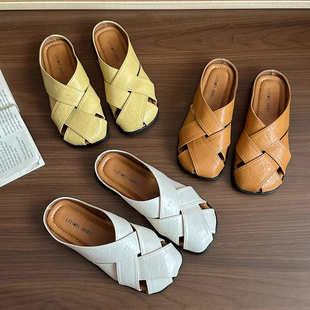 平底休闲凉鞋 法式 夏外穿2025新款 女鞋 拖罗马猪笼精致 软底包头拖鞋