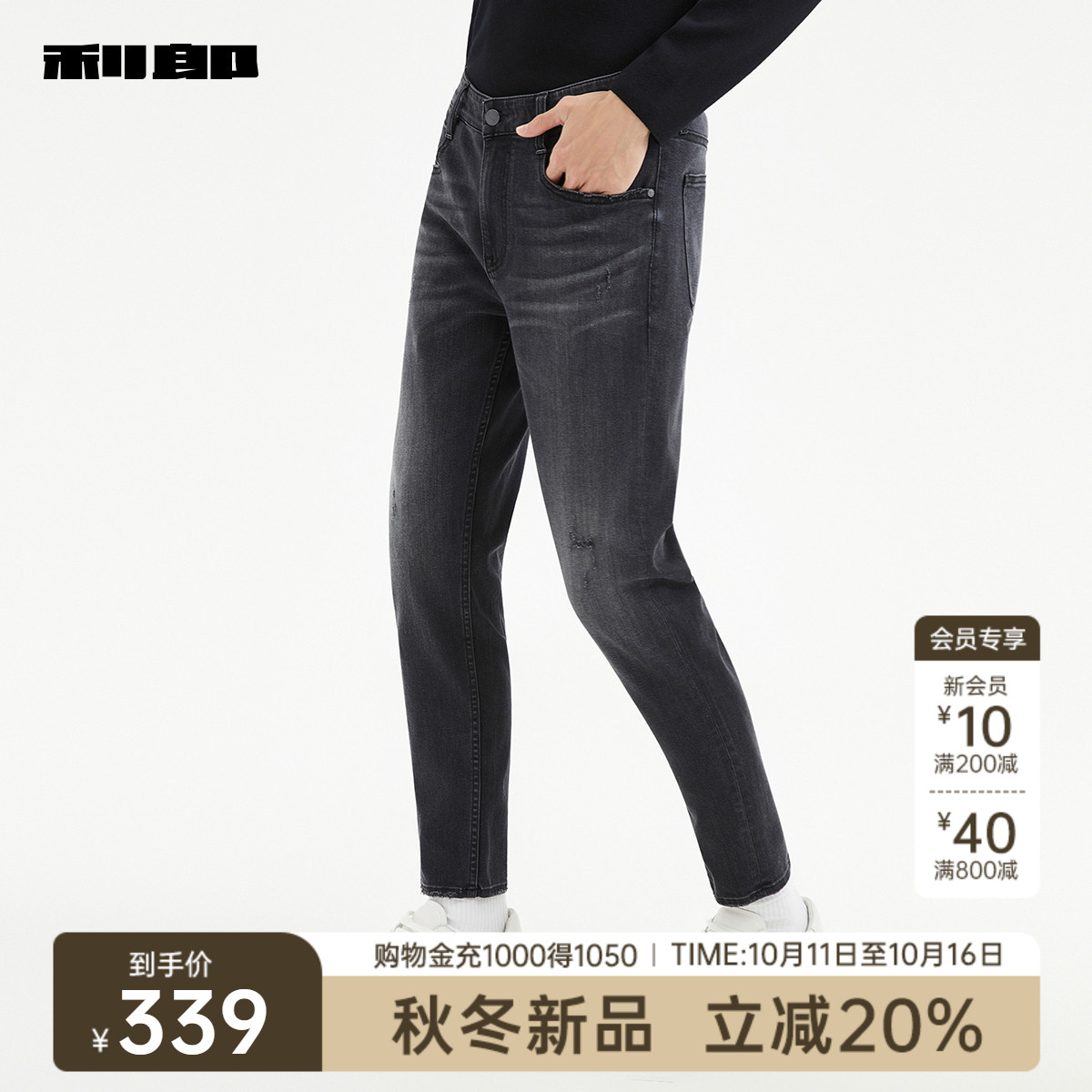 明线设计中腰锥形裤 太平鸟男装 复古水洗黑色牛仔裤 秋冬季 潮 牛仔裤