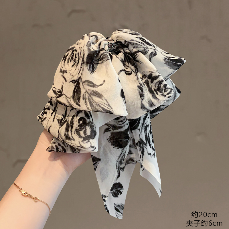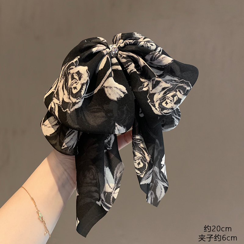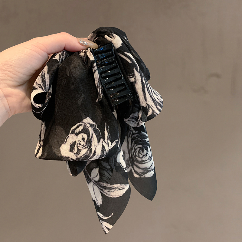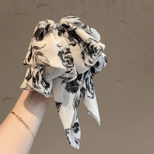 韩国东大门新款 优雅碎花雪纺飘带高马尾夹ins网红飘逸蝴蝶结抓夹