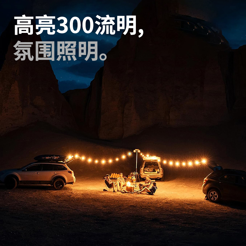 途步者光豆营地卷尺灯太阳能感应警报防水便携收纳串灯天幕氛围灯