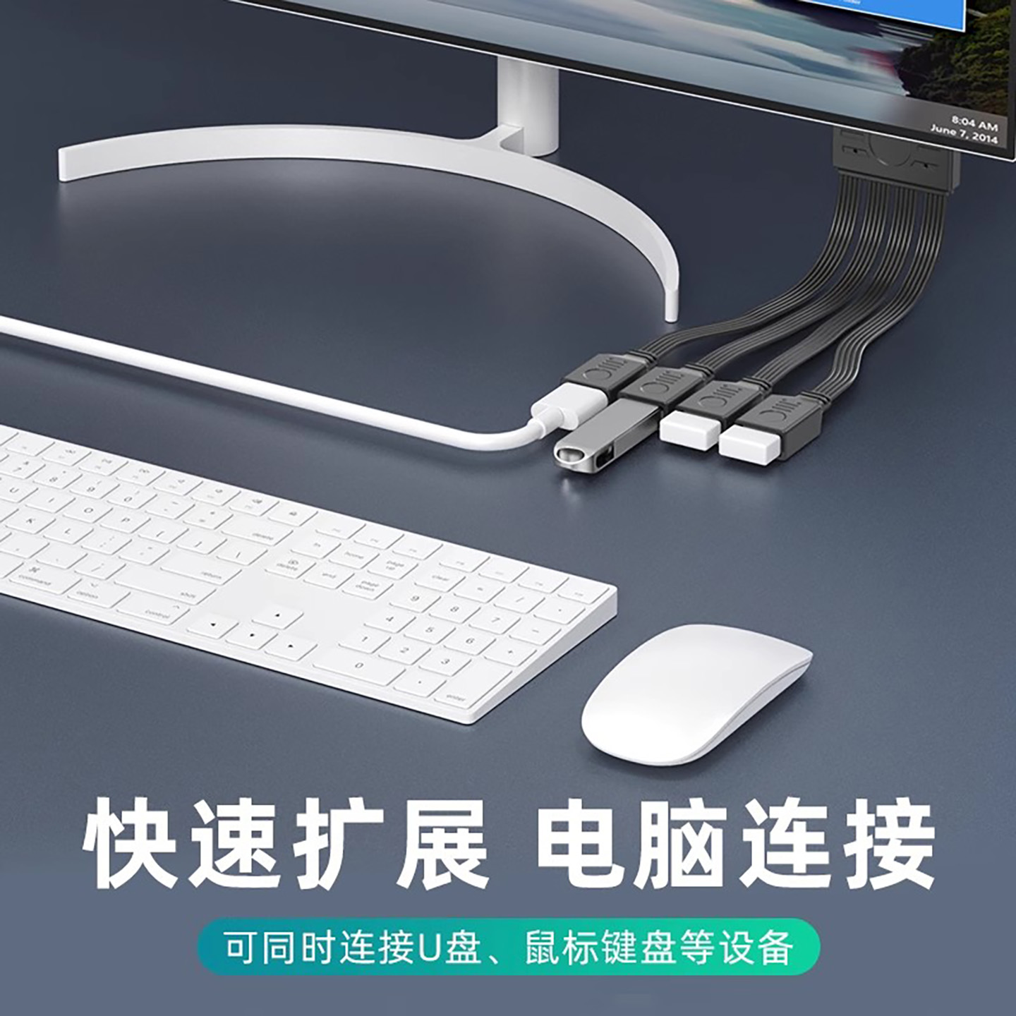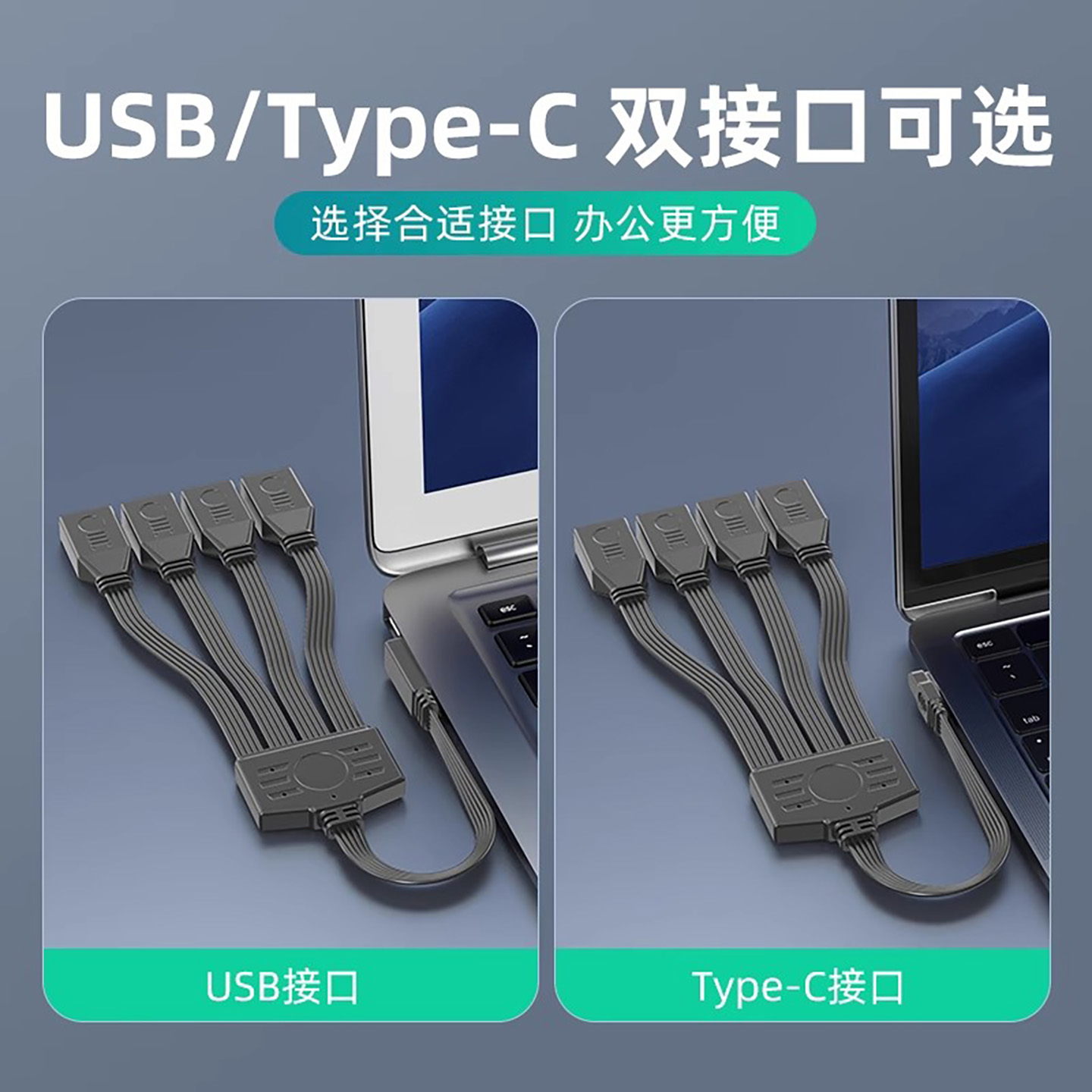 usb扩展器充电分线器typec拓展坞插头接U盘键盘鼠标一分四多口hub笔记本电脑ubs1拖4转接头加长供电延长