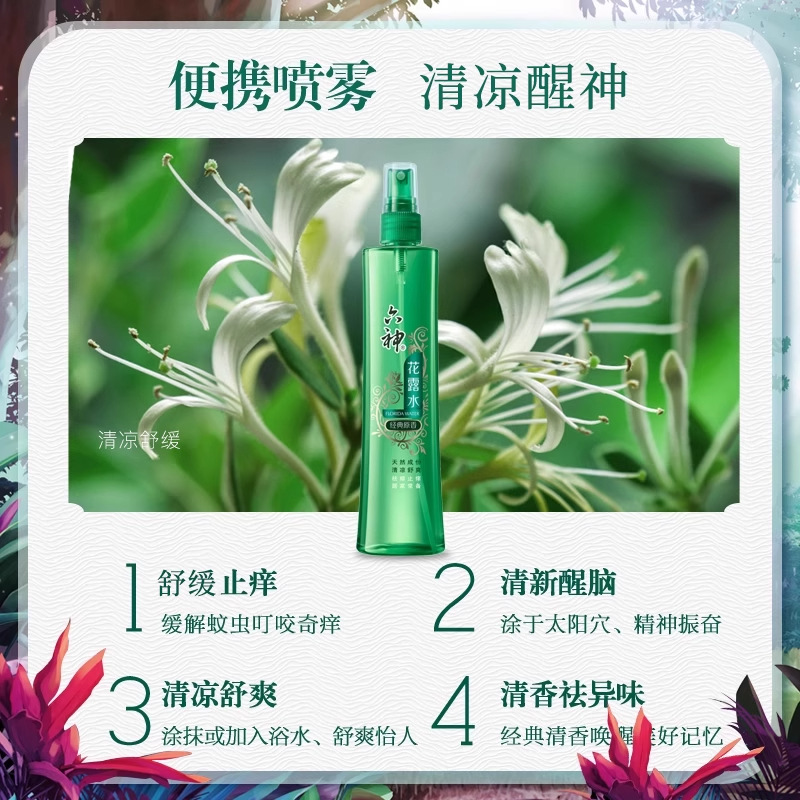 六神花露水官方旗舰店正品 国货玻璃瓶止痒驱蚊香水195ml 香薰经典