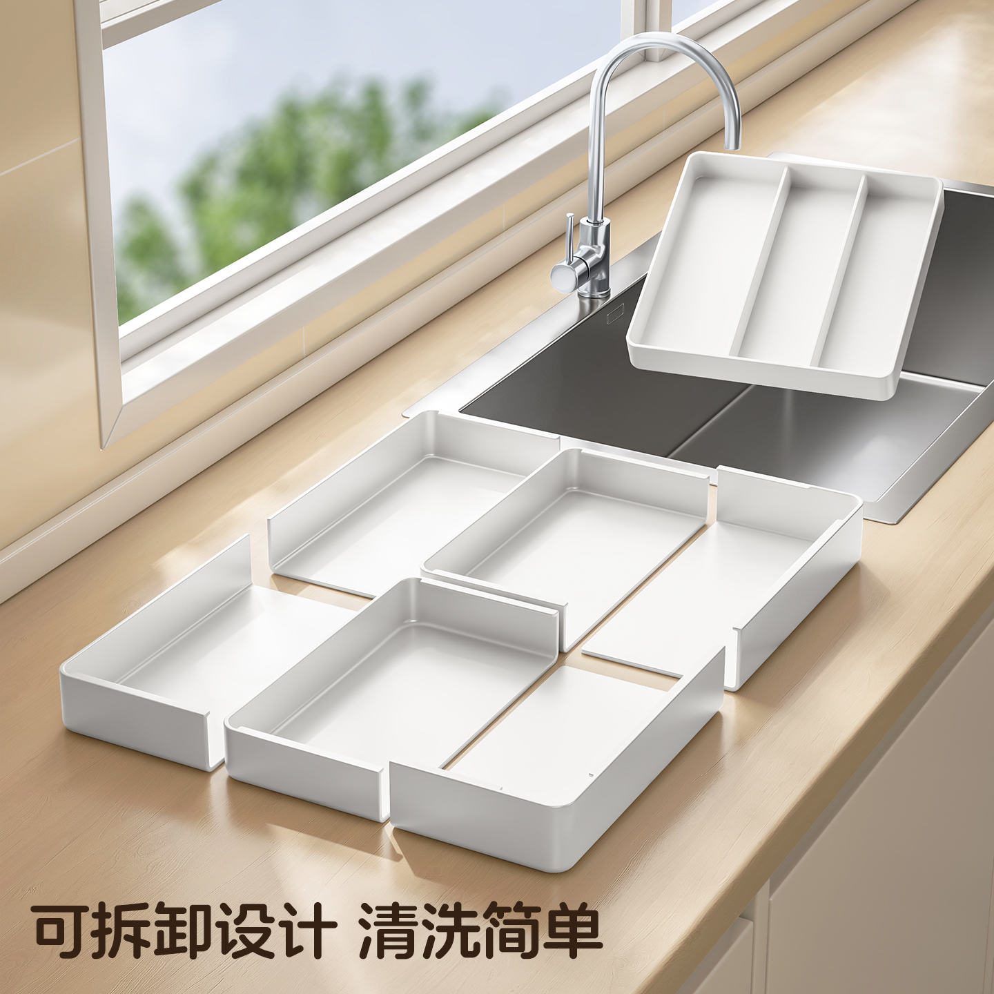 厨房抽屉收纳分隔板刀叉勺筷子橱柜内置物架分格整理神器内置隔板