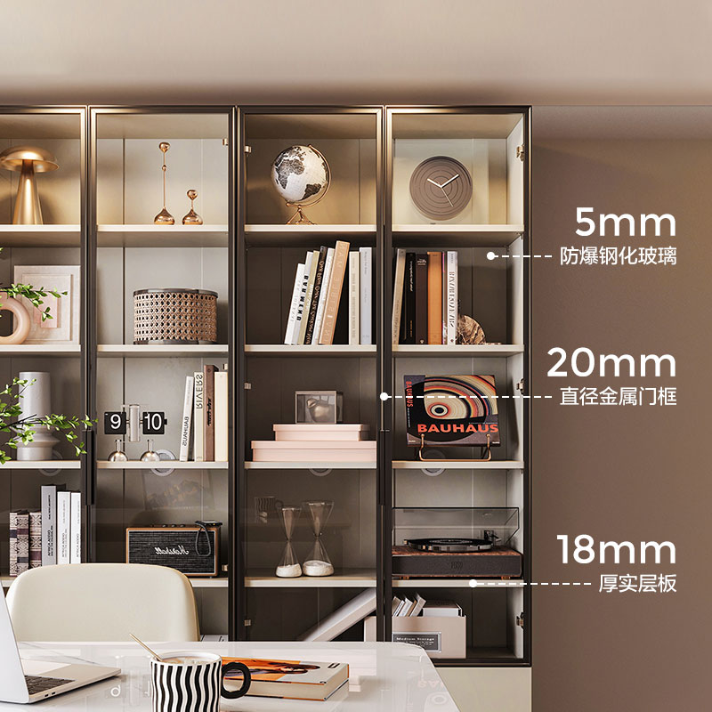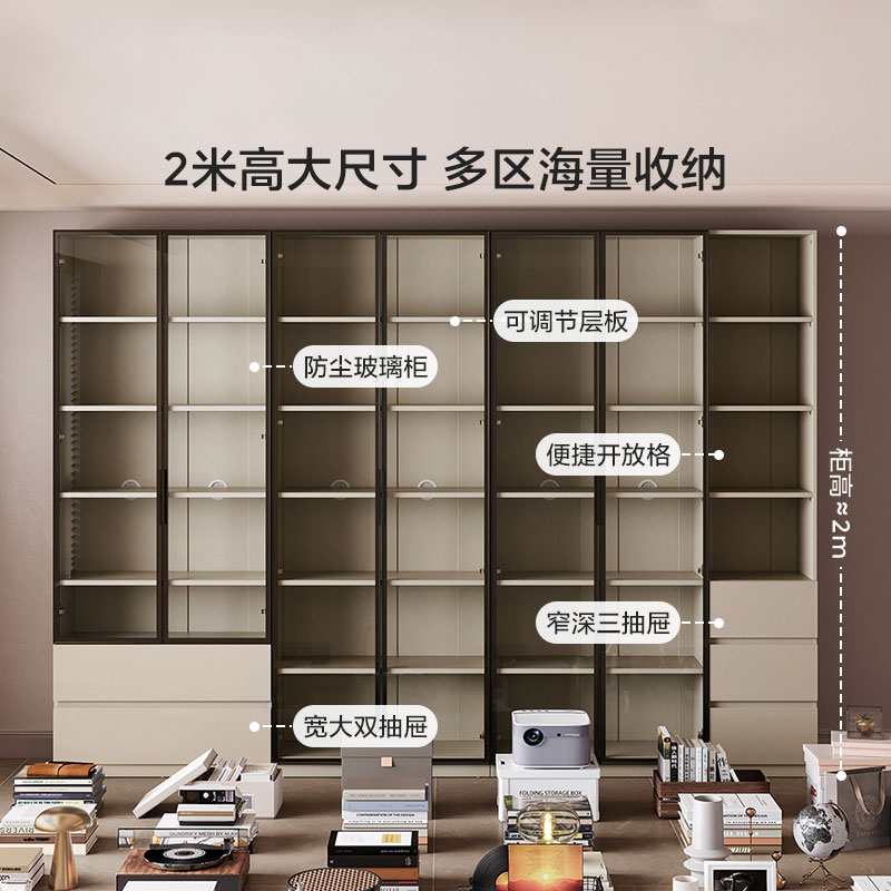 出乎生活镜湖展示柜单个书柜实木小户型玻璃客厅电视边柜储物柜子
