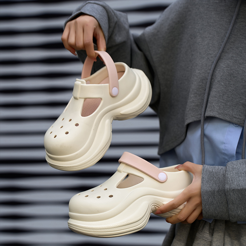 简约舒适时尚 女外穿海边沙滩增高韩新款 厚底凉拖鞋 休闲百搭洞洞鞋