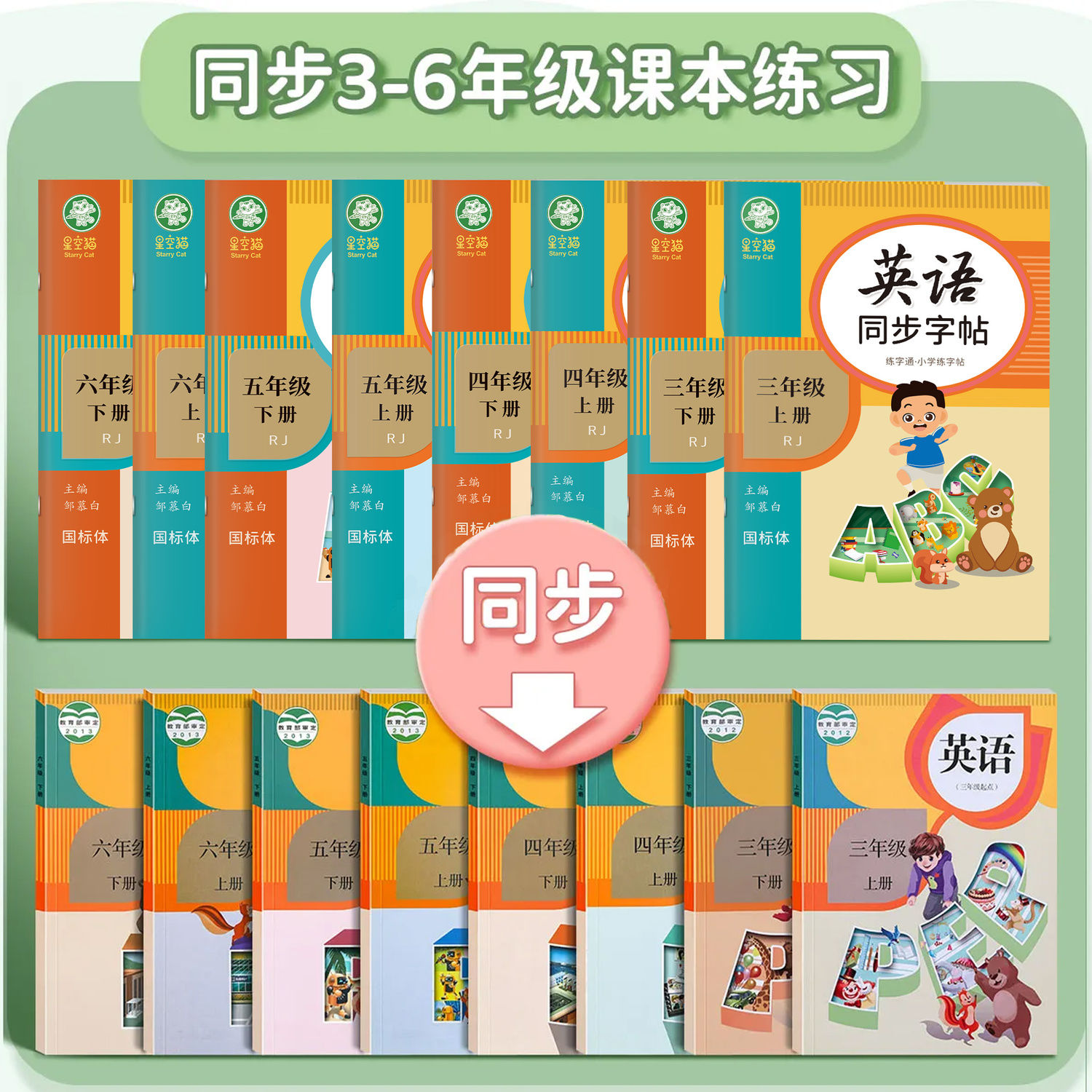 单词练习英文 6年级英语字帖练字帖练字通星空猫三四五六年级上册下册课本教材同步字帖小学生每日一练儿童练字本新版 人教版 PEP国3