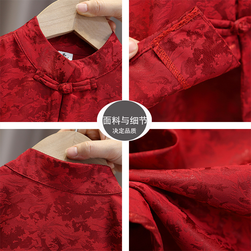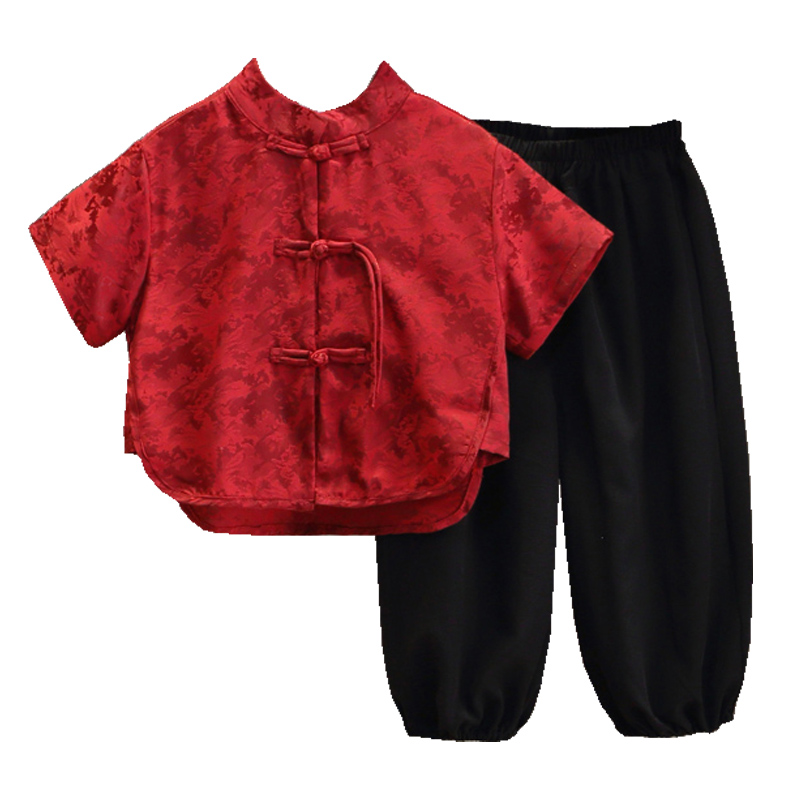 夏季 唐装 儿童中国风红色喜庆短袖 套装 男童汉服周岁礼服男宝宝中式