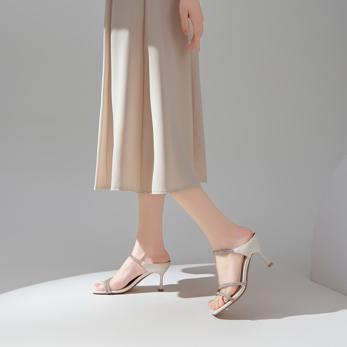 方头凉拖鞋 戈美其商场同款 气质绝美高跟鞋 2025夏季 仙女风水钻凉鞋