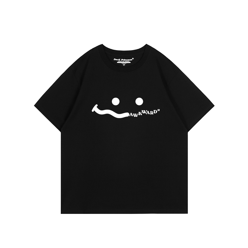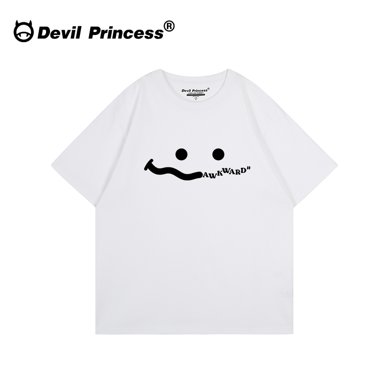 ins风超火宽松半袖 设计感笑脸印花白色正肩t恤女短袖 上衣 新款 夏季