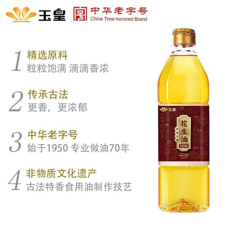 玉皇古法小榨花生油900ML炒菜家用土榨莒南特香优质醇香压榨营养