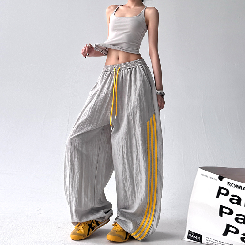 直筒三道杠减龄防晒裤 超好看2025夏季 女条纹拼接运动裤 休闲裤 新款
