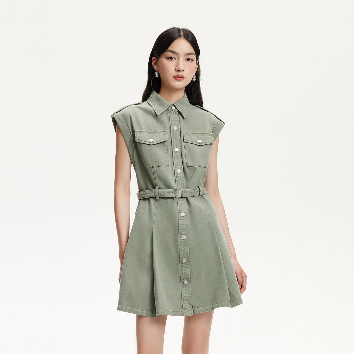 含棉莱赛尔腰带翻领短裙裙子 新款 Vero Moda奥莱连衣裙2025夏季