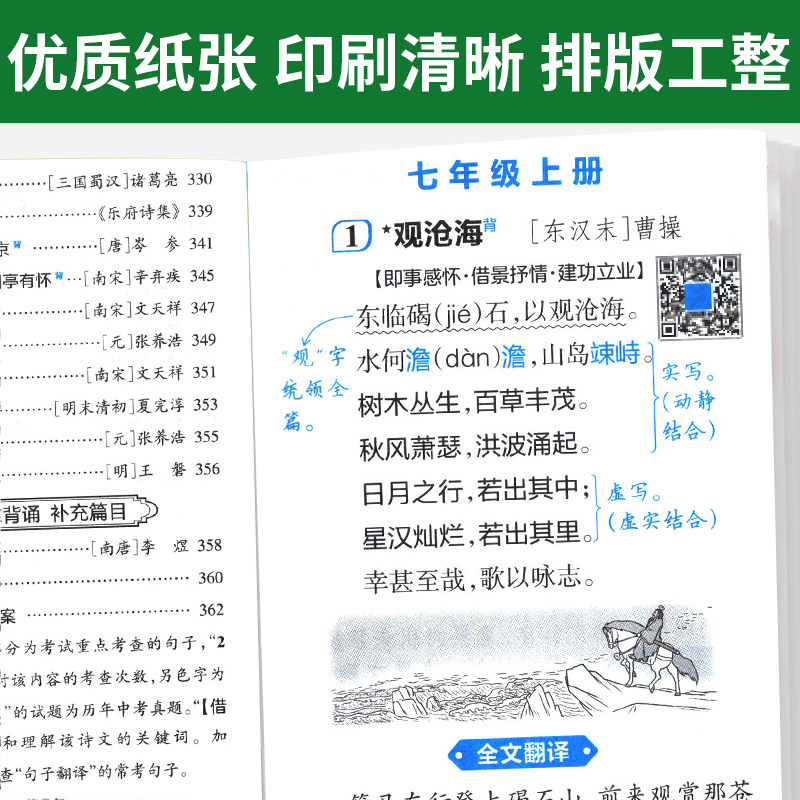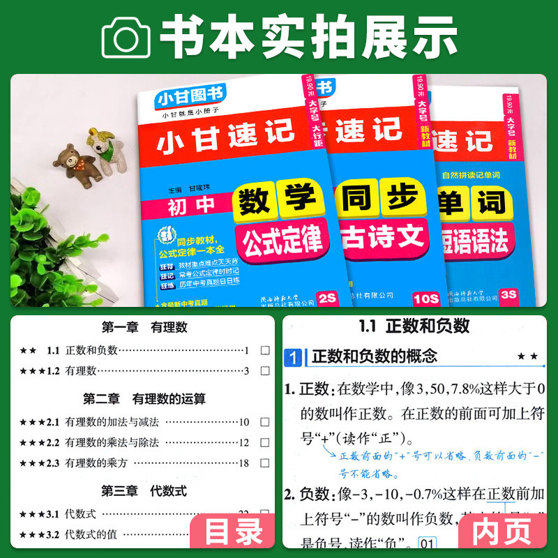 小甘速记初中必背古诗词和文言文全解一本通2025人教版 卡片大全口袋书 英语单词记背神器记忆本3500词小四门必背知识点数学理化公式
