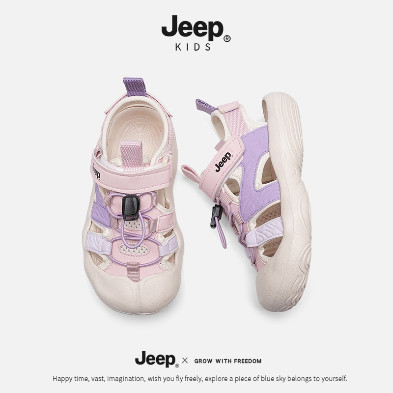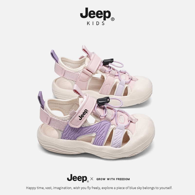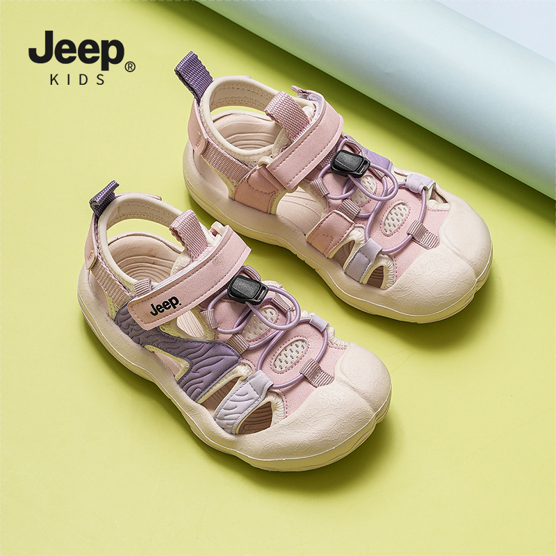 儿童沙滩鞋 jeep女童夏季 子2025新款 男童防踢鞋 轻便魔术贴粉色凉鞋