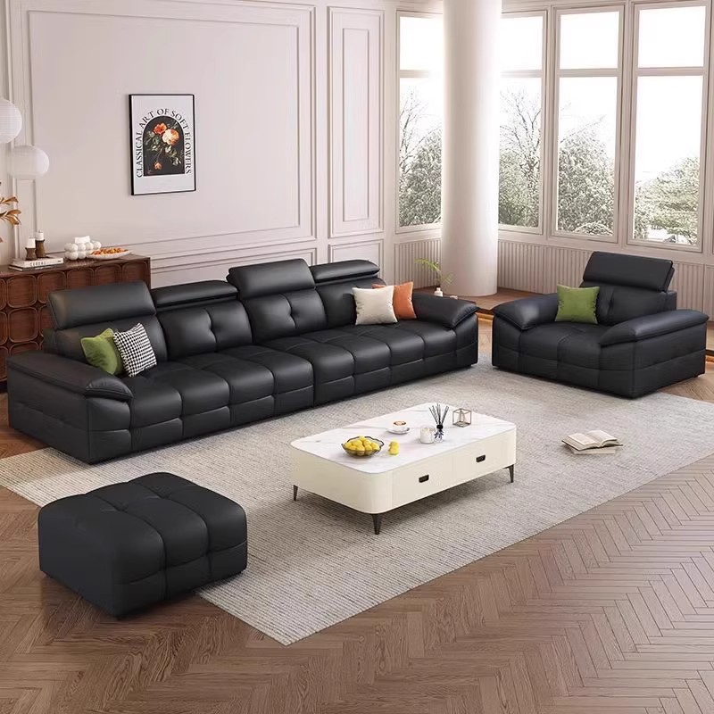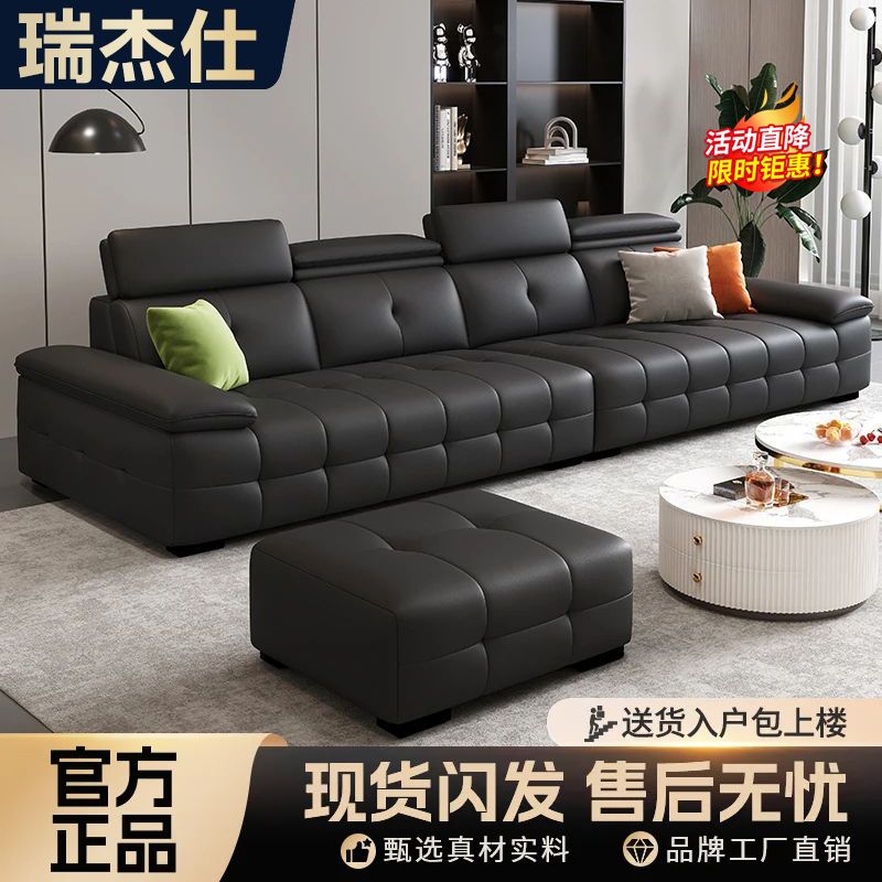 劳伦斯沙发客厅意式 极简大小户型黑色钢琴键真皮高级三四人位直排