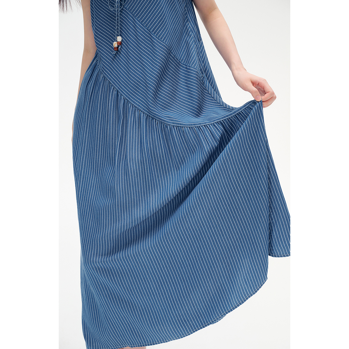 宽松V领短袖 新款 裙子18465221 佐丹奴假两件连衣裙女夏季 设计师款