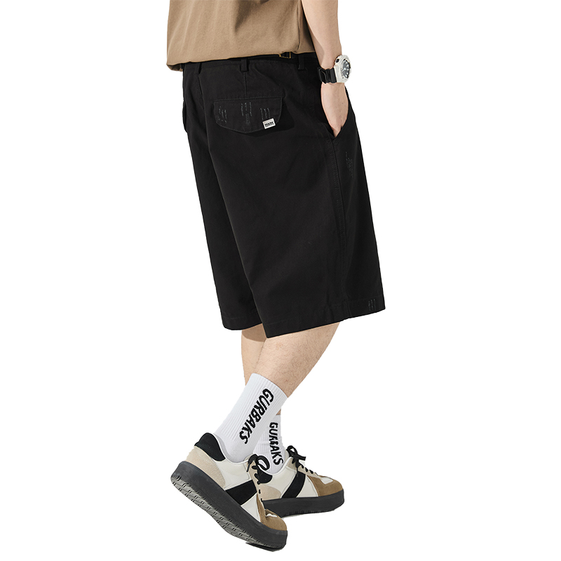 男士 休闲短裤 水洗五分裤 裤 纯棉工装 子新款 松紧腰大码 夏季 宽松薄款