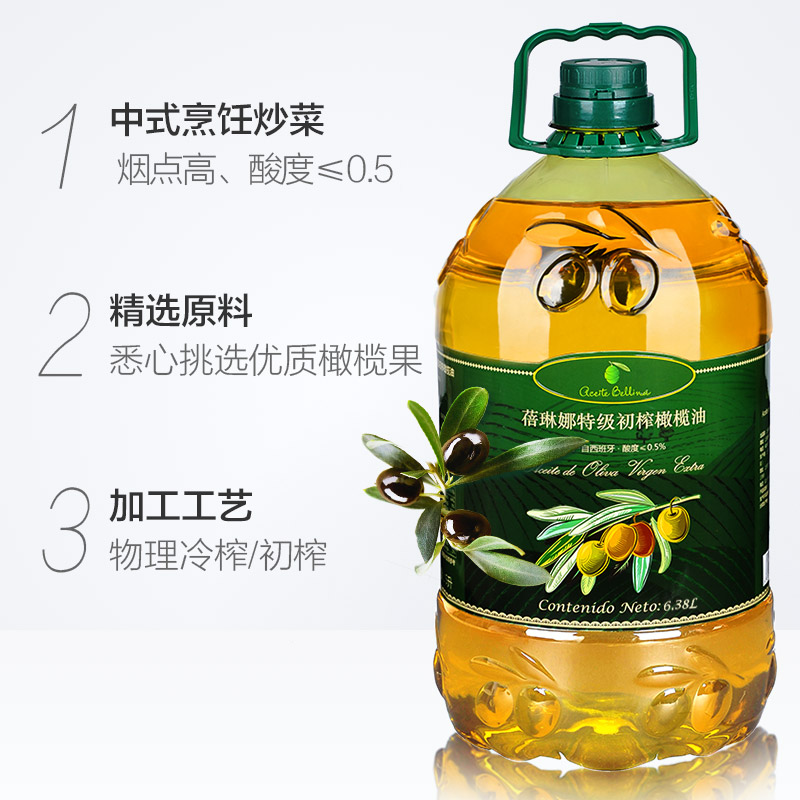 蓓琳娜欧洲原油进口100%特级初榨橄榄油6.38L轻食家用炒菜食用油