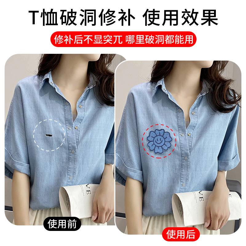 牛仔布补丁贴自粘免缝衣服裤 饰高端无痕修补字母刺绣布贴 子破了装