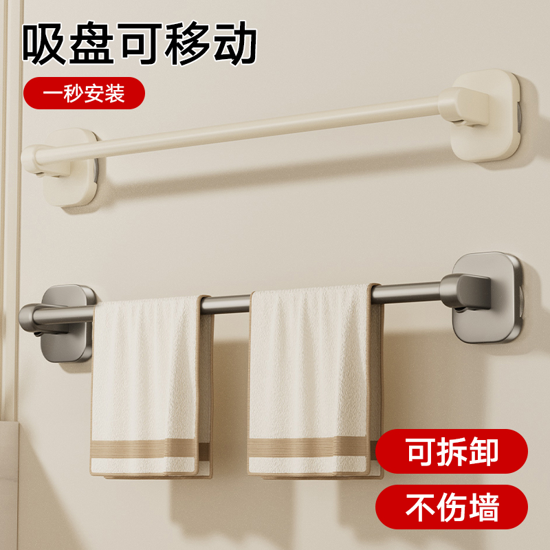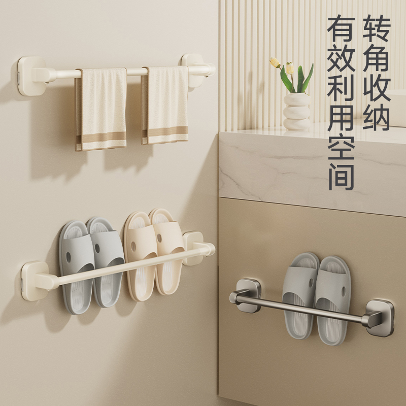 毛巾架子卫生间吸盘毛巾架免打孔厕所挂杆拖鞋 架浴室毛巾杆置物架
