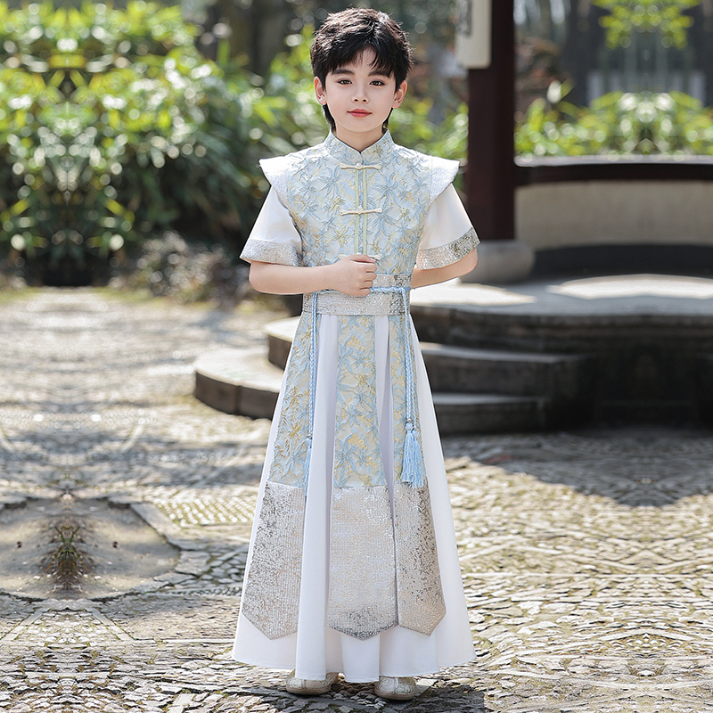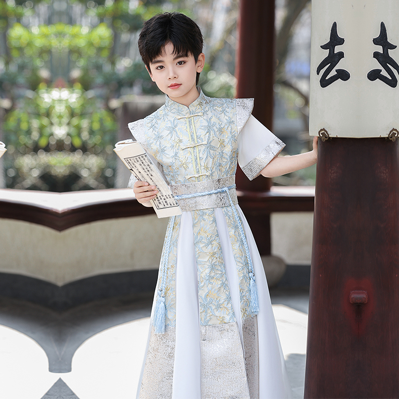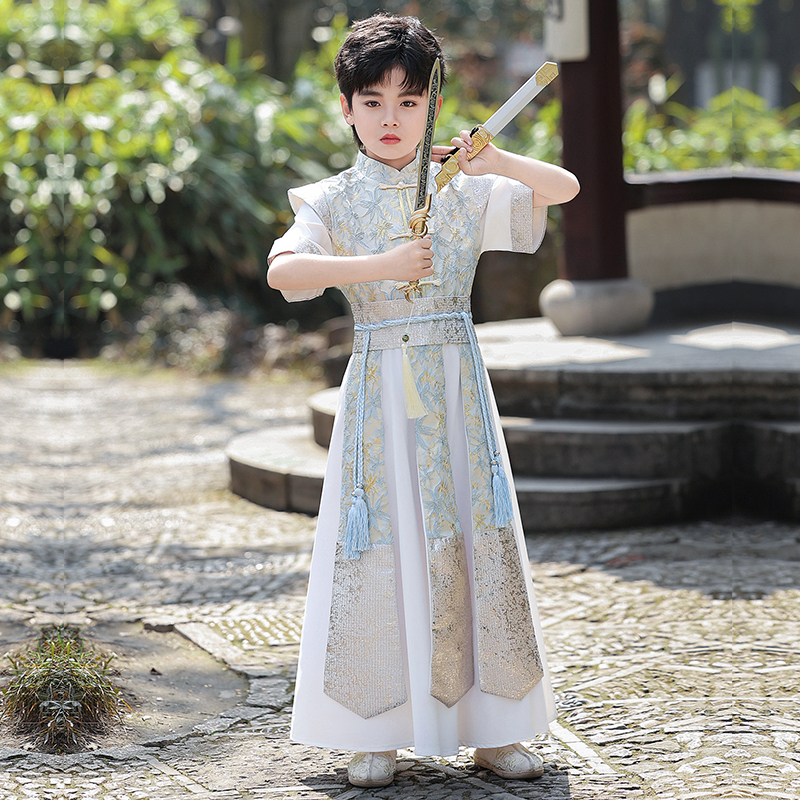 儿童古装 男童汉服夏季 新款 短袖 帅气武侠风幼儿园男孩演出服秋 薄款
